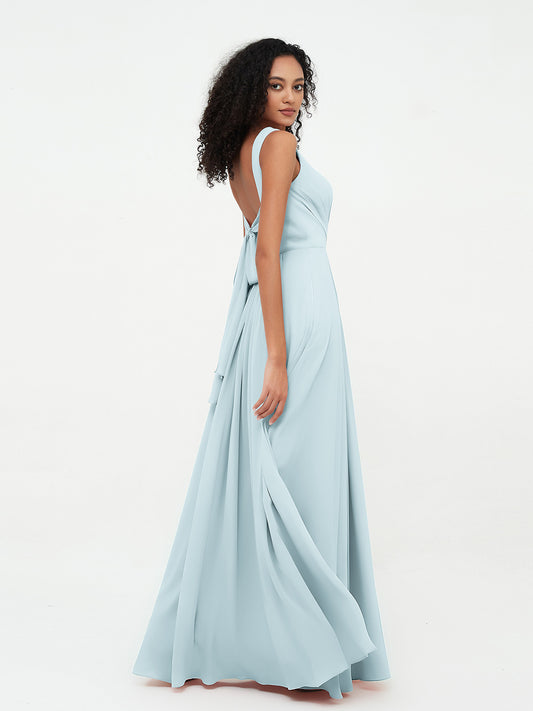 Babaroni TiffanyOpen Back Chiffon Dress with V Neck-Dusty Blue