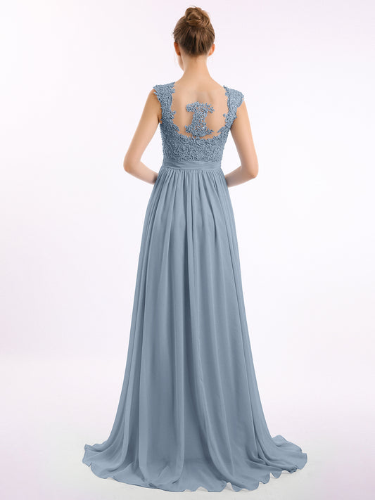 Babaroni JenniferLong Chiffon Dress with Lace Appliqued Bodice-Mint Green