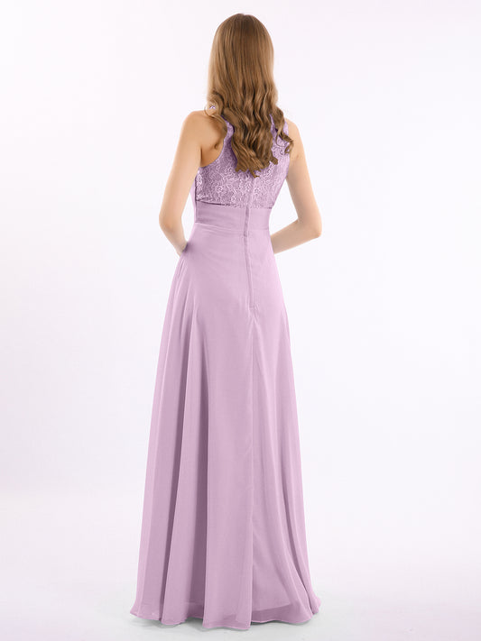 Babaroni LucilleLace Deep V-neck and Back Chiffon Long Dresses-Wisteria