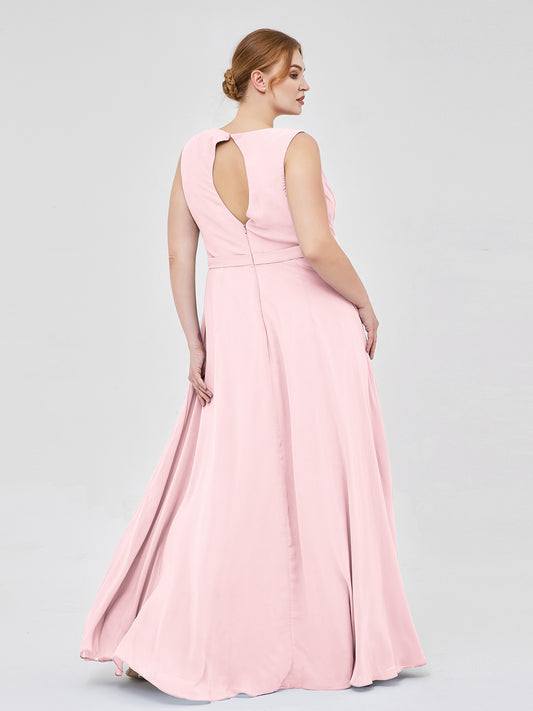 Babaroni BenncaSleeveless V-neck Chiffon A-line Dress with Slit Dusty Rose