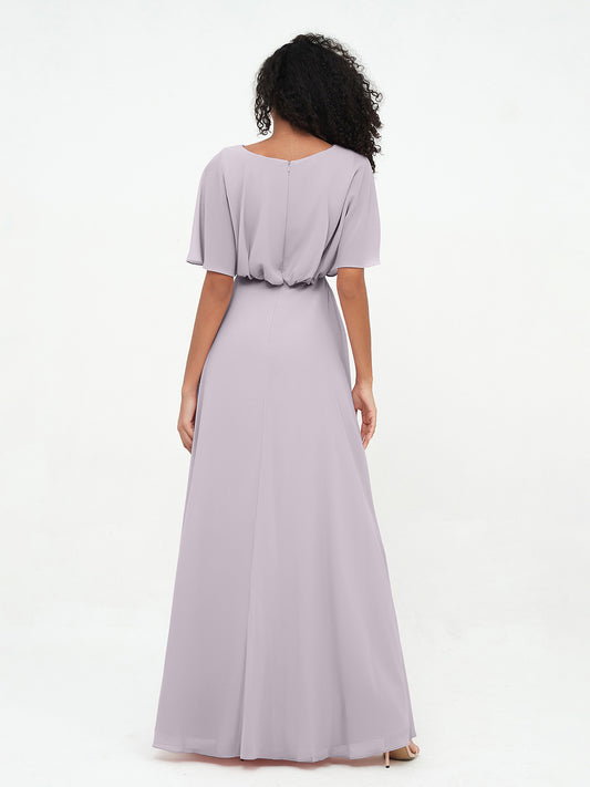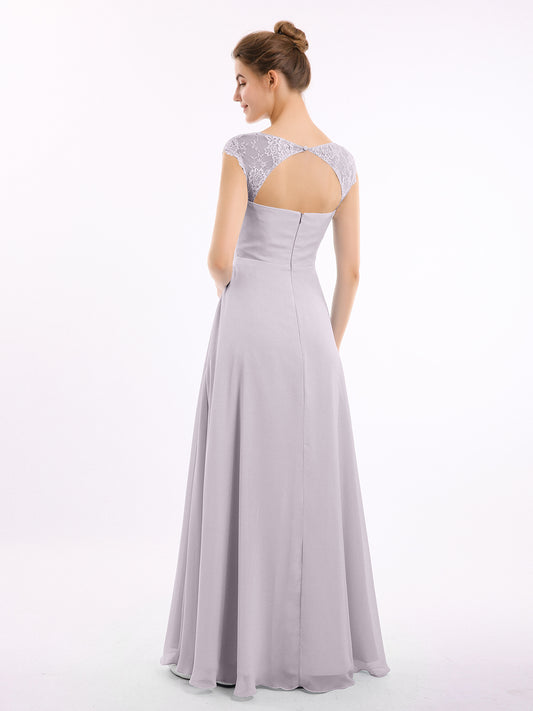 Babaroni JacquelineCap Sleeves Chiffon Long Bridesmaid Dress Dusk