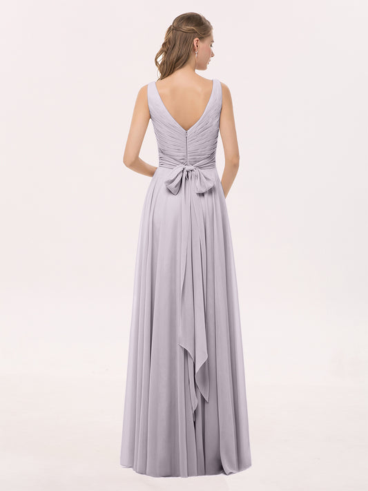 Babaroni CassiopeiaV Neck Long Chiffon Dress with Bow Dusk