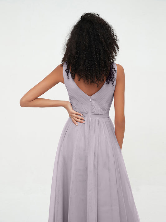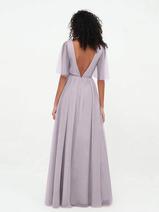 Babaroni KatherineA-line V-neck Tulle Max Dresses with Deep-V Back-Dusk
