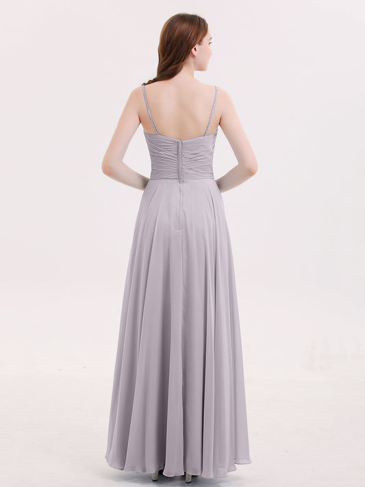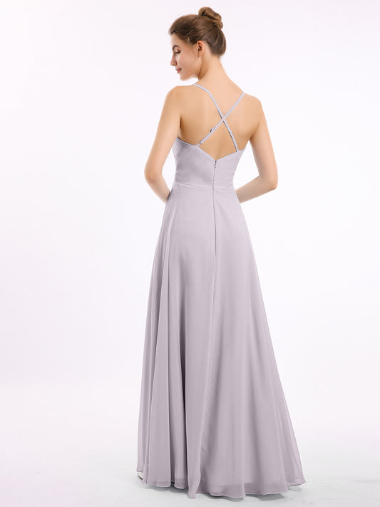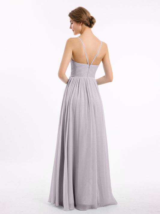 Babaroni BraccaV-neck Spaghetti Straps Bridesmaid Dress With Slit Dusk
