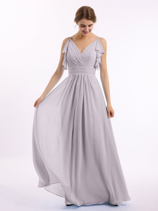 Elevate the bridal party in our Ruffle V-neck Flutter Sleeves Mermaid Chiffon Dress. Delicate sash detail adds elegance, while cascading ruffles and flutter sleeves create a whimsical charm. The dress features a stylish slit for added allure. Perfect for bridesmaids, this enchanting ensemble combines...- $119.00