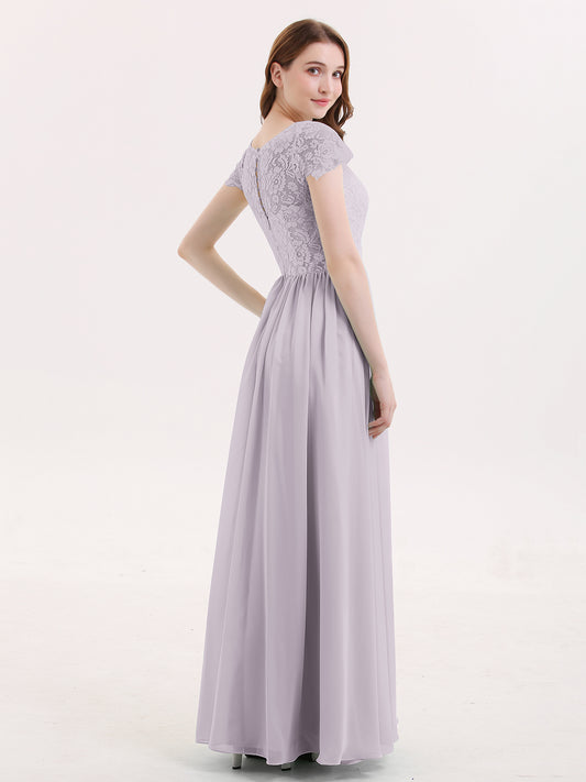 Babaroni MarleyChiffon Bridesmaid Dresses with Lace Cap Sleeves-Dusk