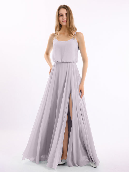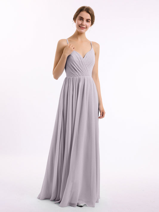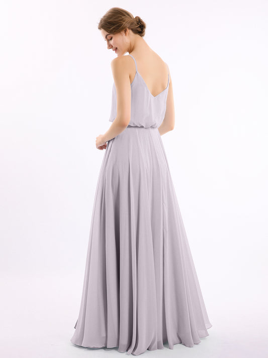 Babaroni LouiseSpaghetti Strap V-neck Chiffon Gowns with Pocket-Dusk