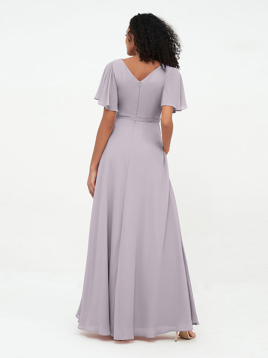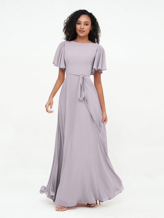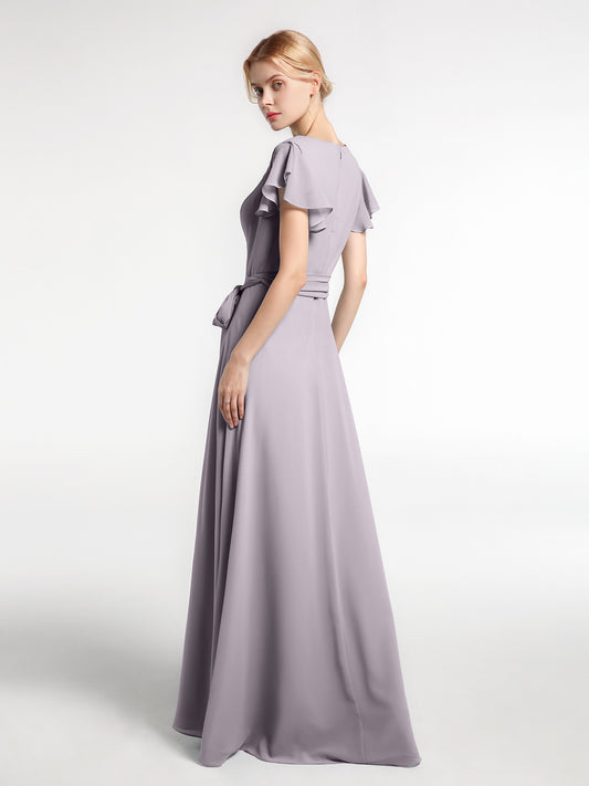 Babaroni YvetteFlutter Sleeves Chiffon Max Dresses with Sash Bow-Dusk