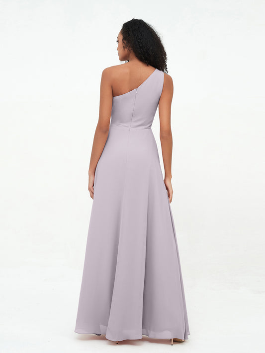 Babaroni XantheOne-Shoulder Chiffon Max Dresses with Slit-Dusk