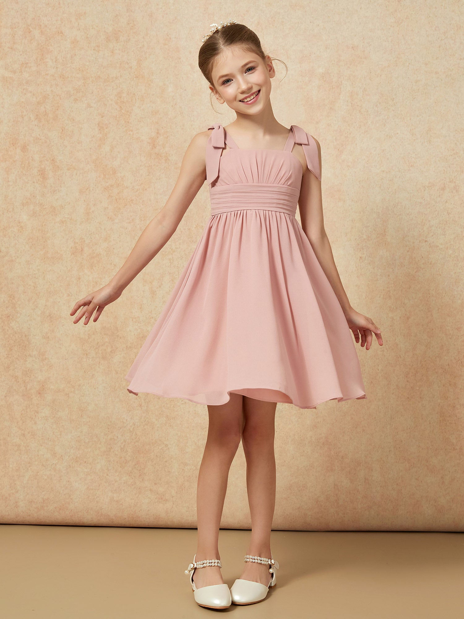 Babaroni Cattle JBDBowknot Straps Knee-length Junior Bridesmaid Dresses Dusty Rose