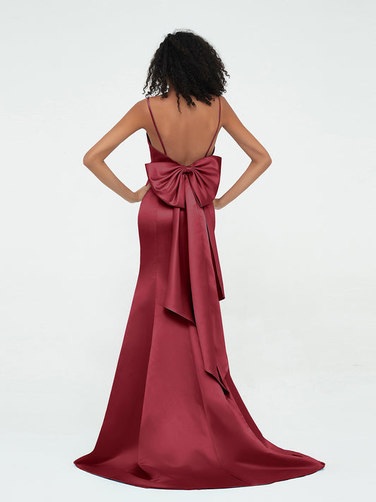 Babaroni HarlowSquare Neck Spaghetti Straps Satin Dresses with Bow Watermelon