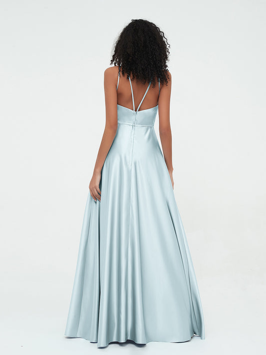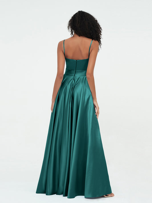 The Corset Top Pleated Stretch Satin Dress boasts a structured corset bodice paired with flowing pleats and luxurious stretch satin, creating a chic and refined silhouette. Silhouette: A-line Fabric: Stretch Satin Hemline: Floor-length Back Details: Zipper Neckline: V-neck Sleeves: Spaghetti Straps Embellishment: Pleated, With...- $139.00