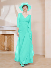 3/4-Length Sleeves V-neck Pleated Long Dress Spa