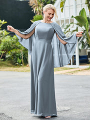 A-line Chiffon Dress with Cape Dusty Blue