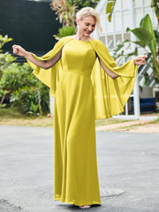 • Elevate your elegance with this A-line chiffon dress, complete with a flowing cape for a look that's effortlessly regal.