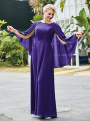 • Elevate your elegance with this A-line chiffon dress, complete with a flowing cape for a look that's effortlessly regal.