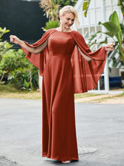 A-line Chiffon Dress with Cape Rust