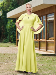 A-line Chiffon Dress with Diamond Neck Cape Daffodil
