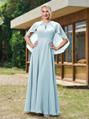 A-line Chiffon Dress with Diamond Neck Cape Mist