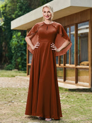A-line Chiffon Dress with Diamond Neck Cape Terracotta