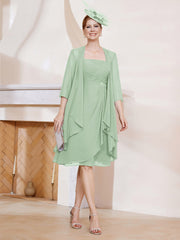 A-Line Chiffon Knee-length Dress With Jacket Dusty Sage