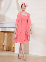 A-Line Chiffon Knee-length Dress With Jacket Watermelon