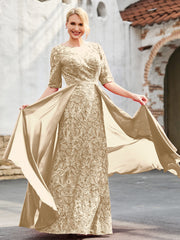A-line Lace Dress with Trailing Champagne