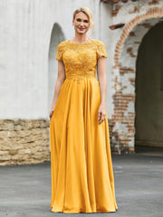 • Step into sophistication with this A-line short sleeves lace top pleated dress, combining delicate lace and flowing pleats for a flattering and feminine look.