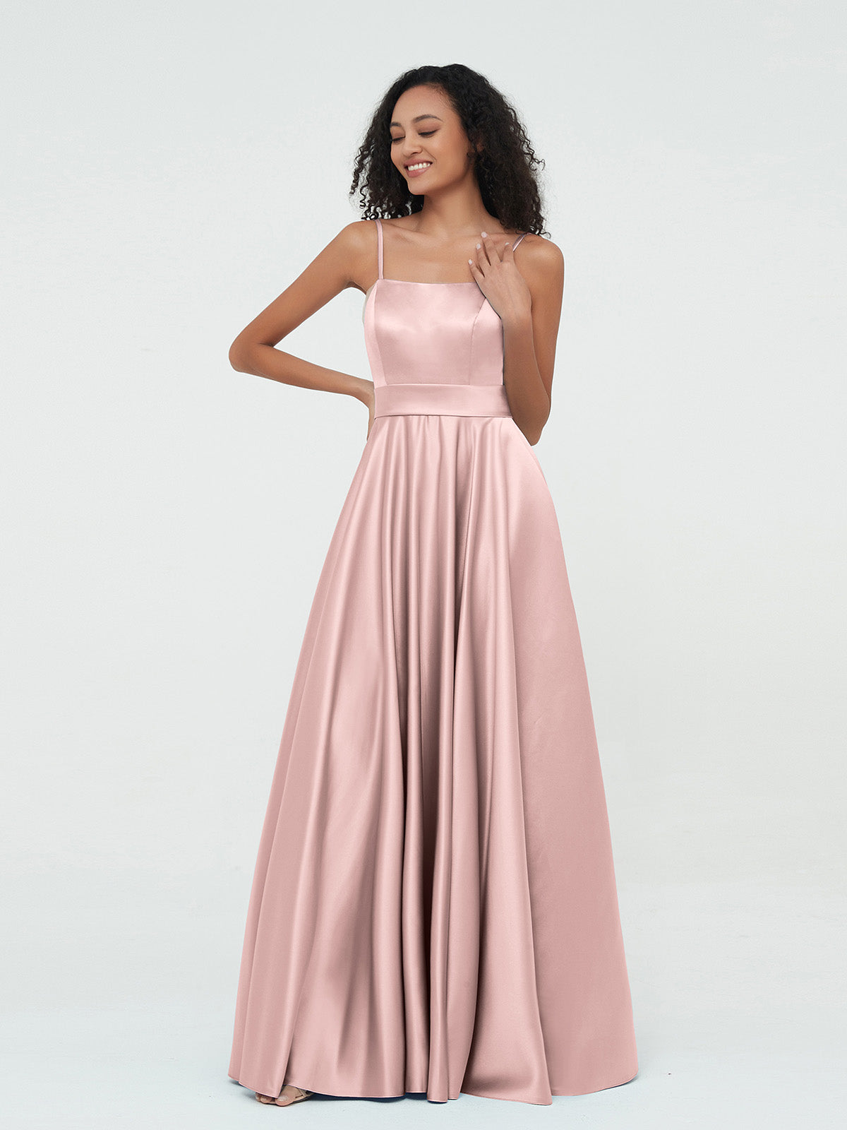 A-line Spaghetti Straps Max Satin Dresses-Dusty Rose