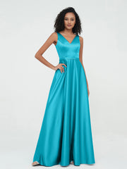 A-line V-neck Max Satin Dresses with Pockets-Jade