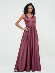 A-line V-neck Max Satin Dresses with Pockets-Mulberry