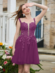 Appliqued Corset Top Short Glitter Prom Dress Orchid