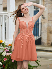 Appliqued Corset Top Short Glitter Prom Dress Papaya