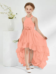 Asymmetrical A-line Junior Bridesmaid Dresses with Flower Papaya