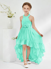 Asymmetrical A-line Junior Bridesmaid Dresses with Flower Spa