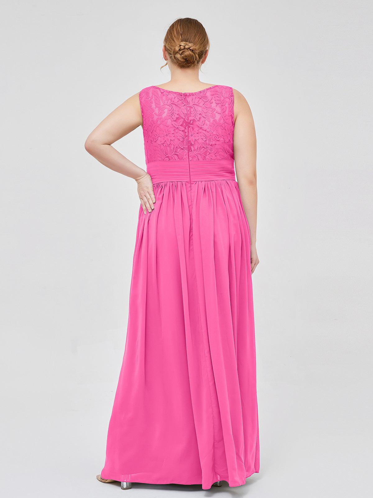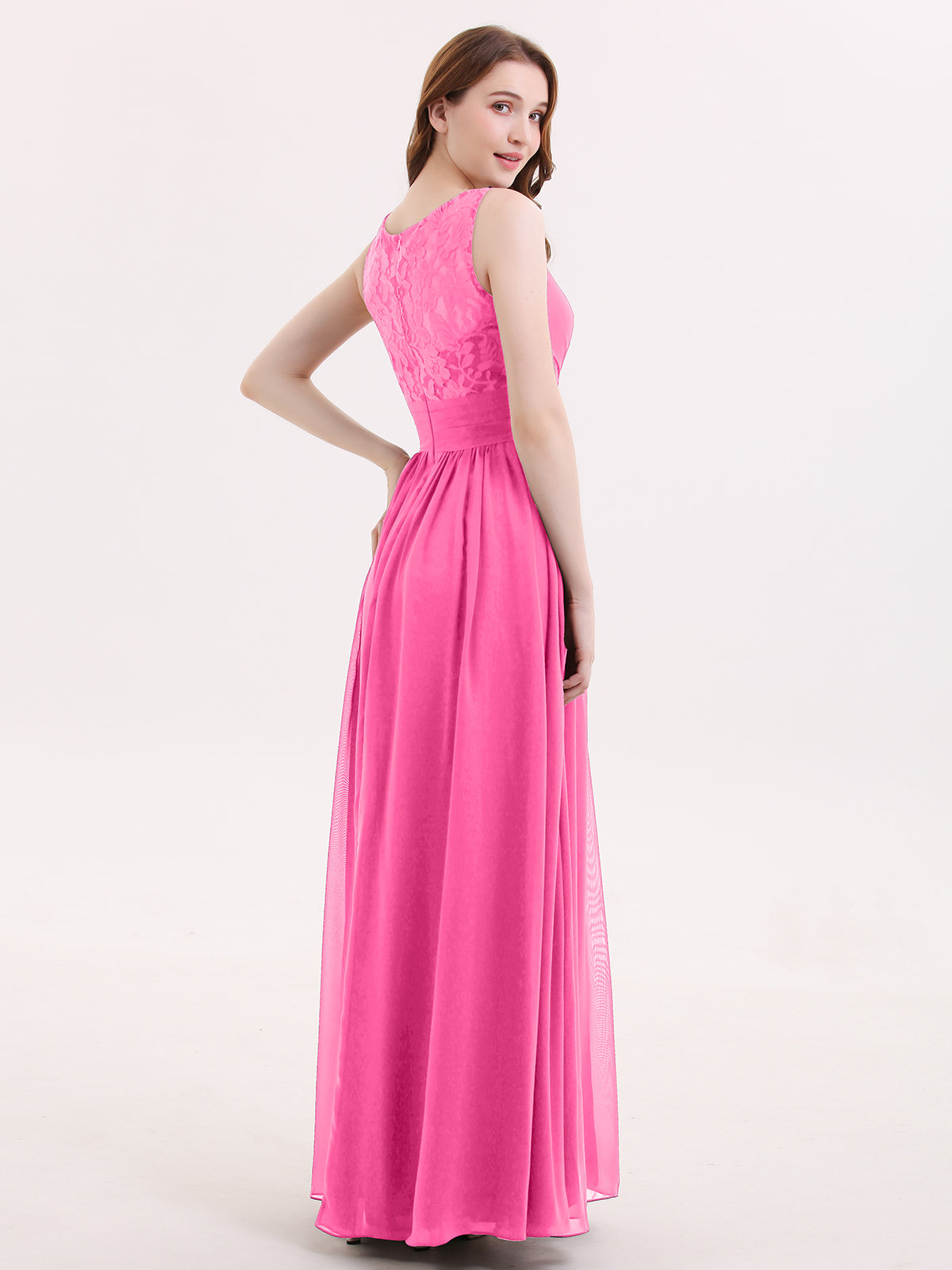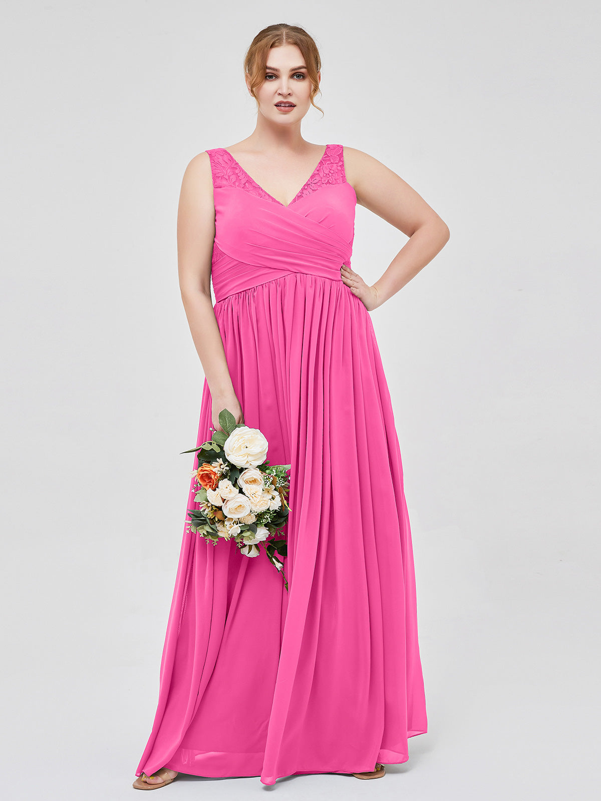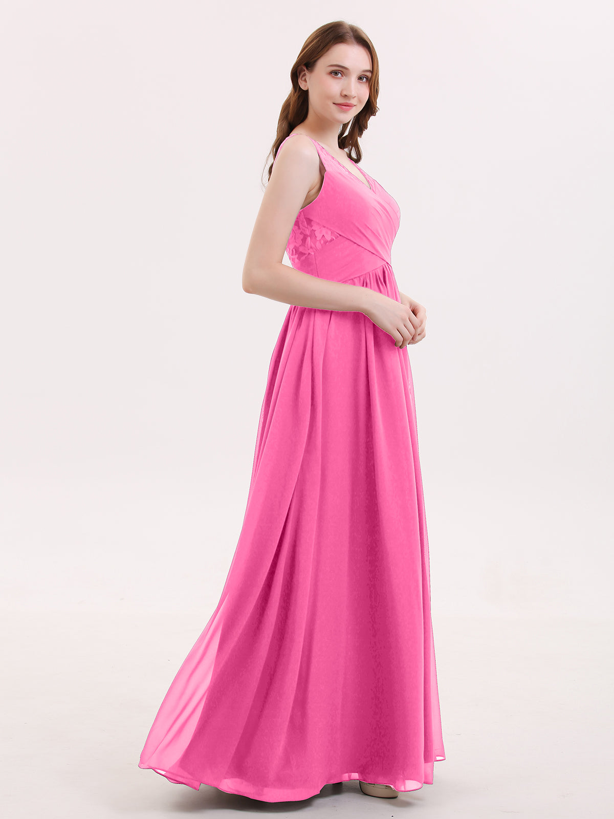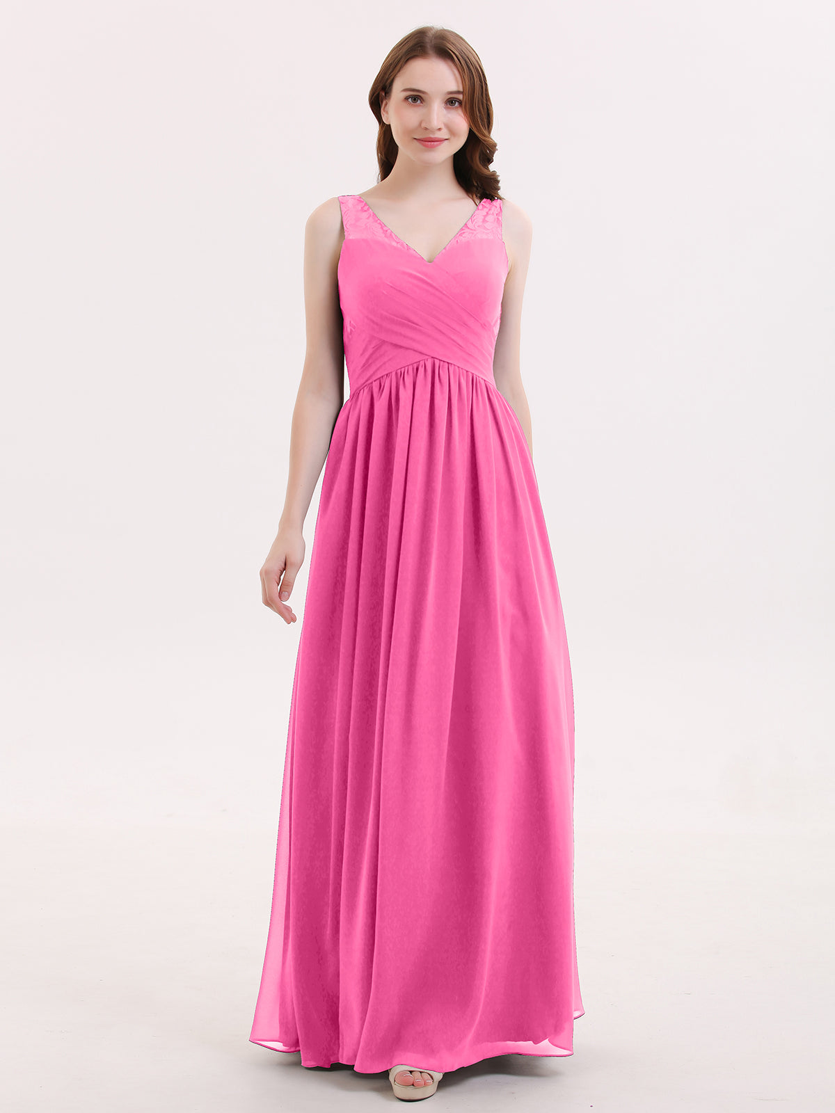 V Neck Chiffon and Lace Maxi Bridesmaid Gown Azalea