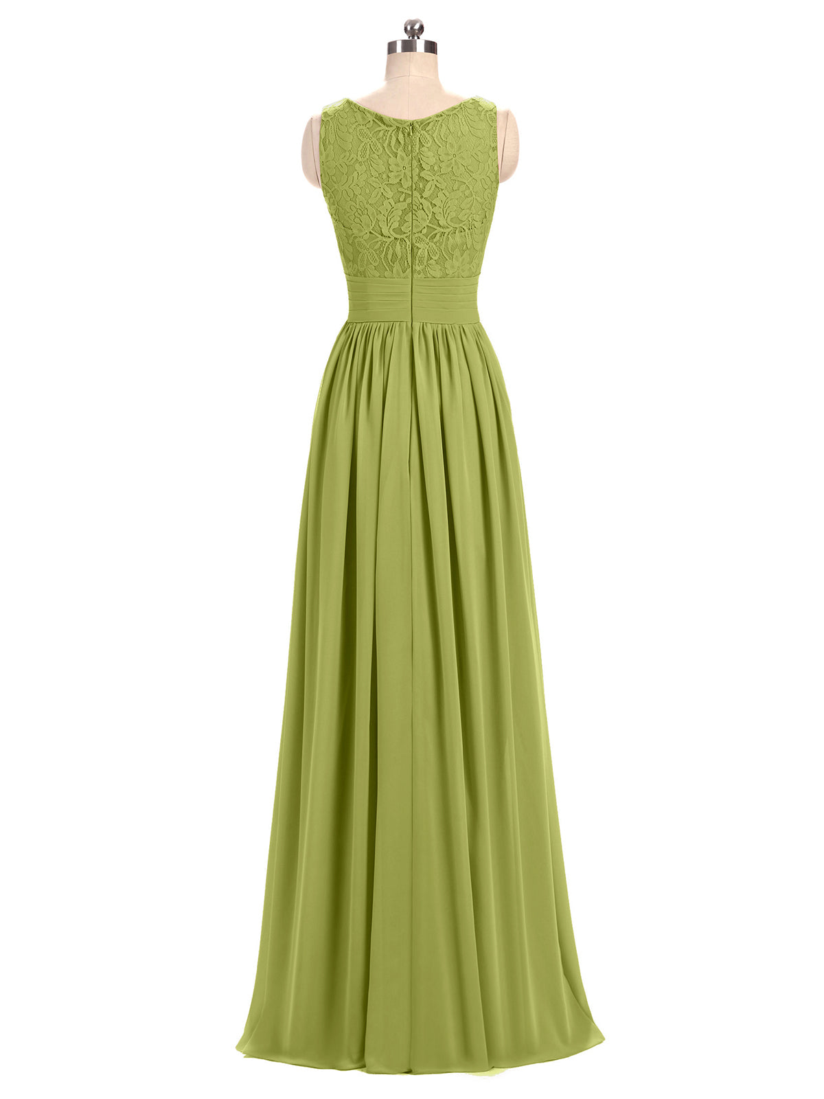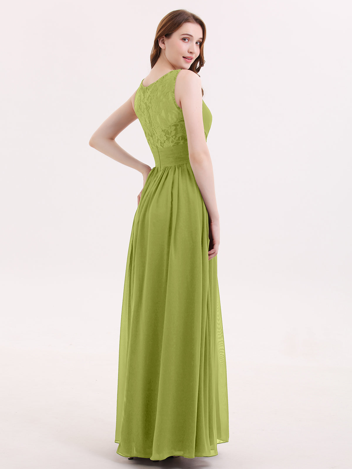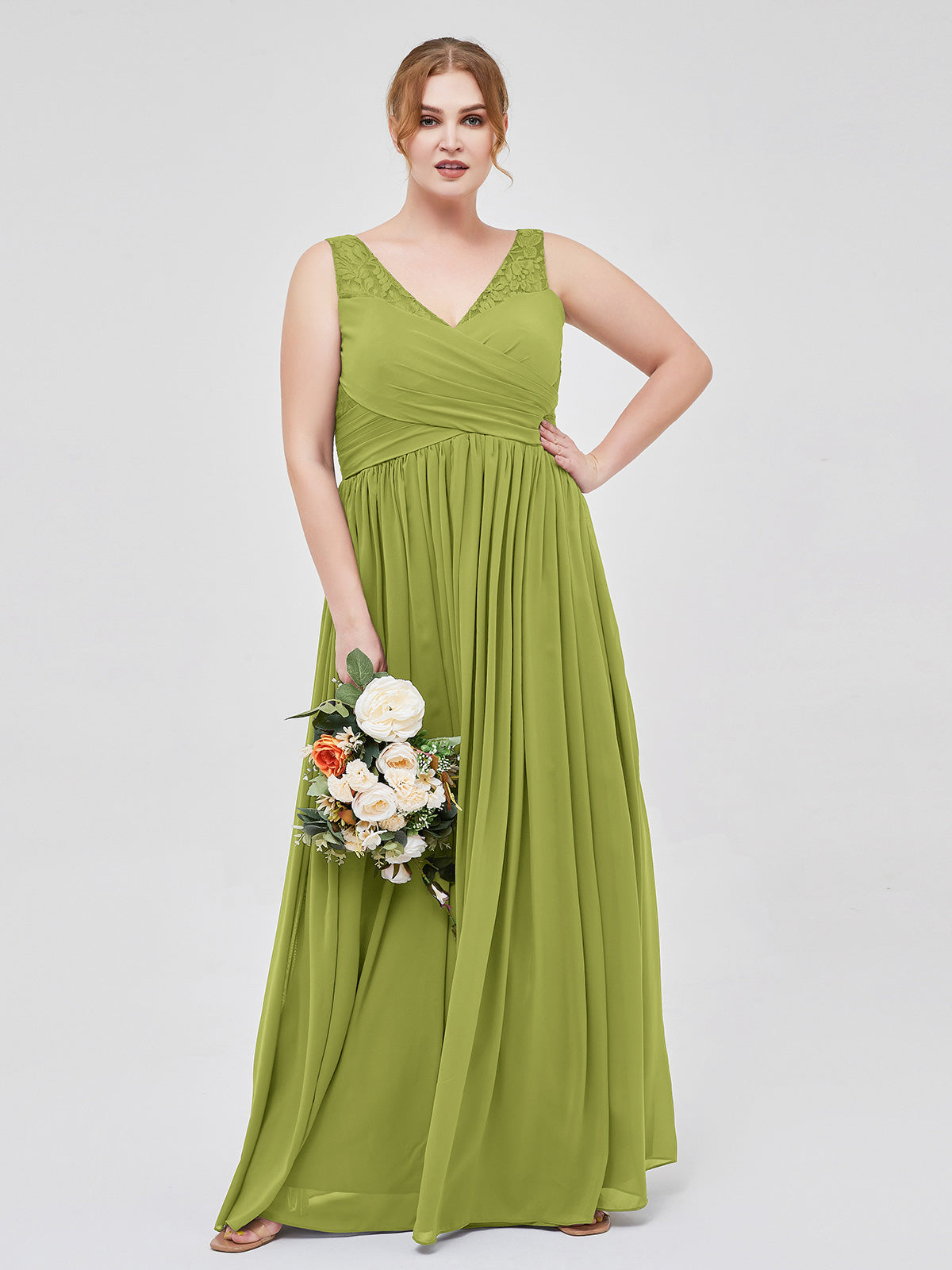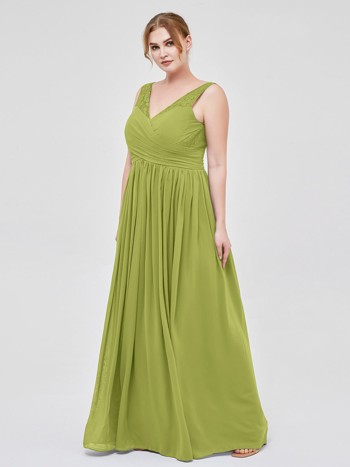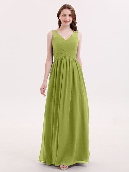 V Neck Chiffon and Lace Maxi Bridesmaid Gown Clover