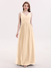 V Neck Chiffon and Lace Maxi Bridesmaid Gown Peach