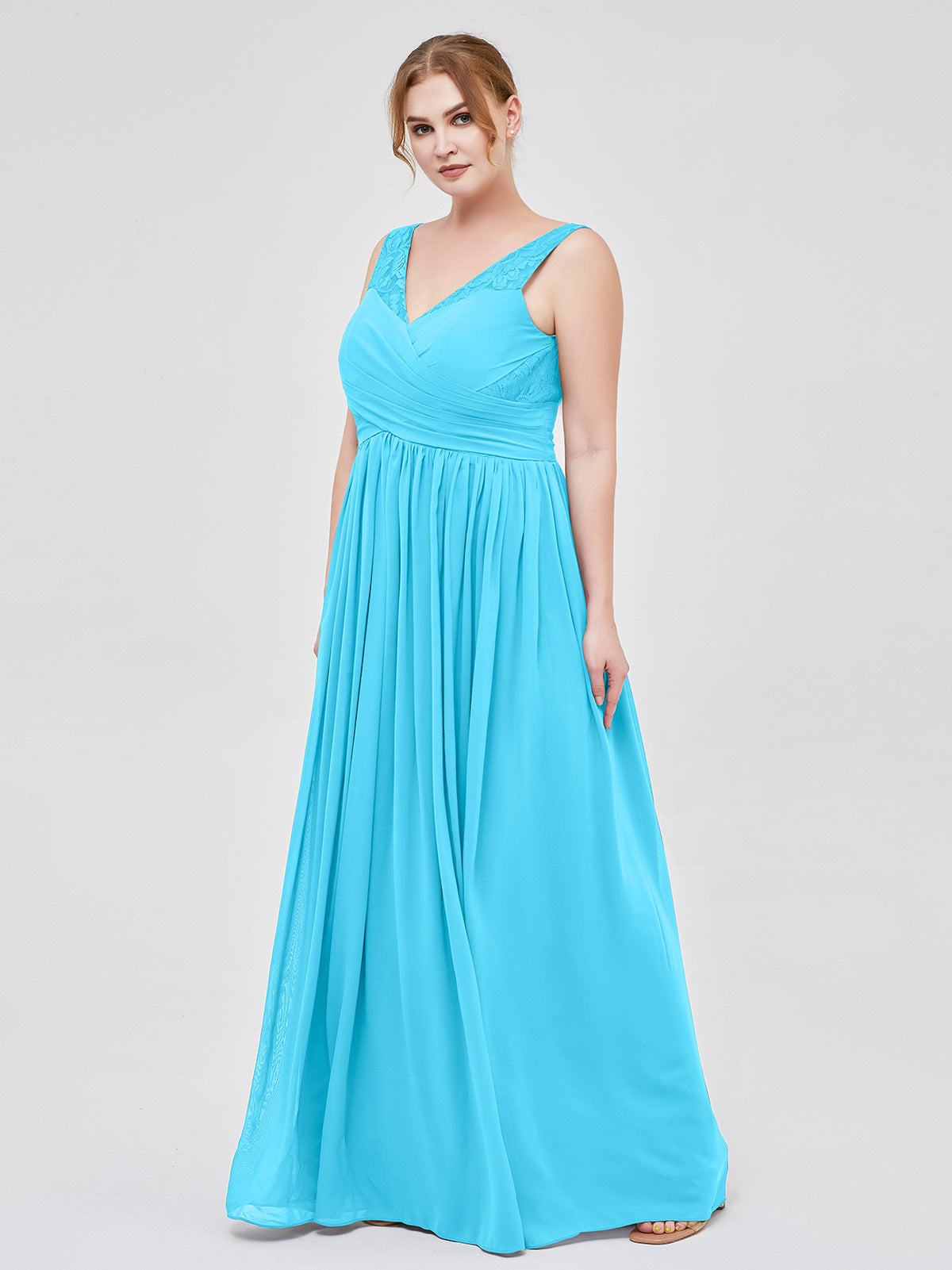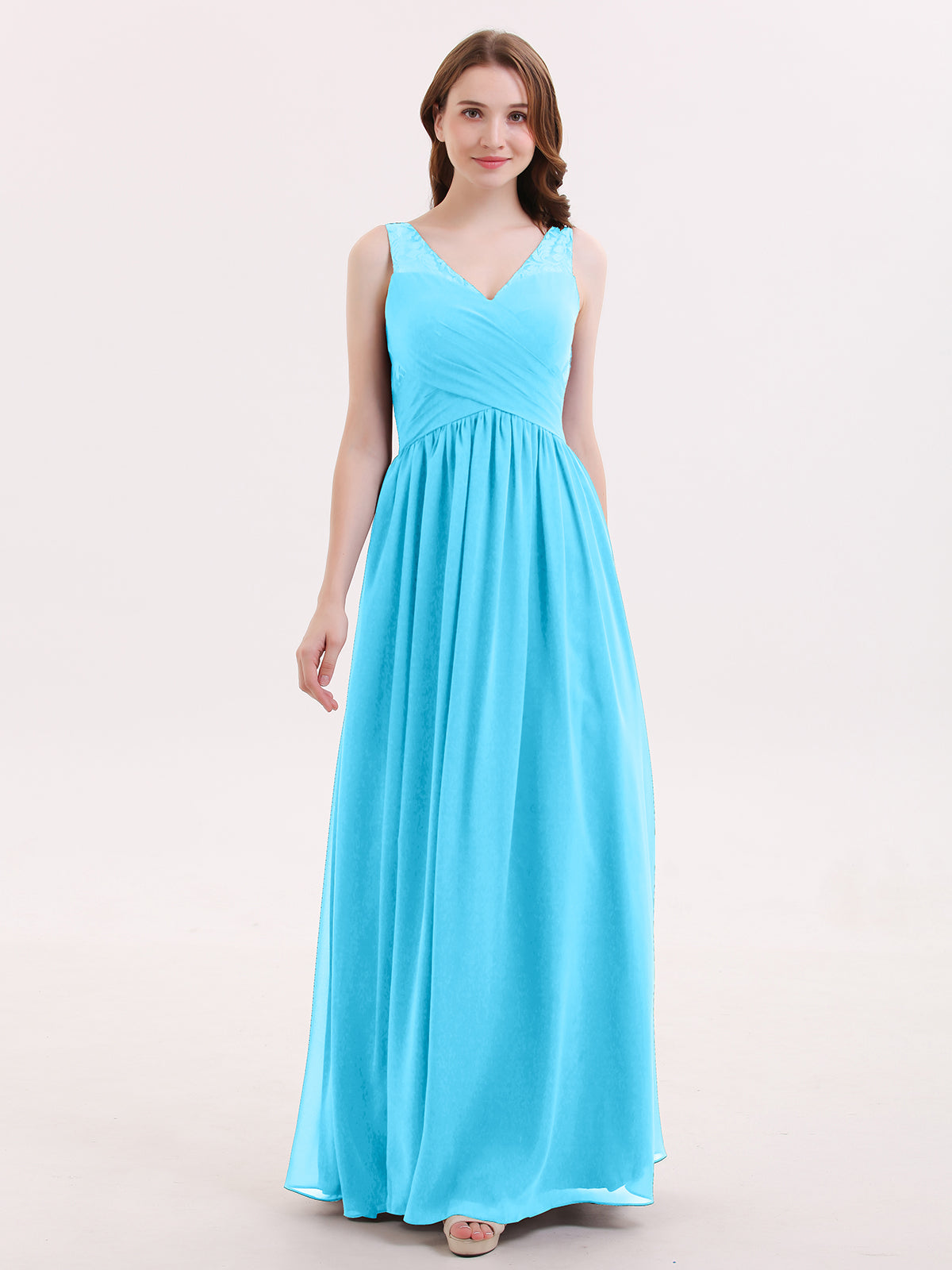 V Neck Chiffon and Lace Maxi Bridesmaid Gown Pool