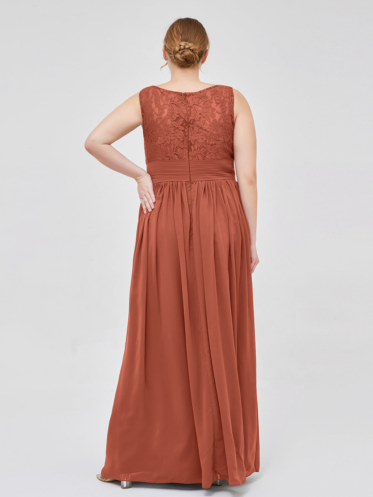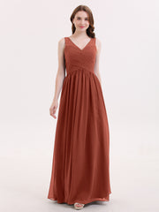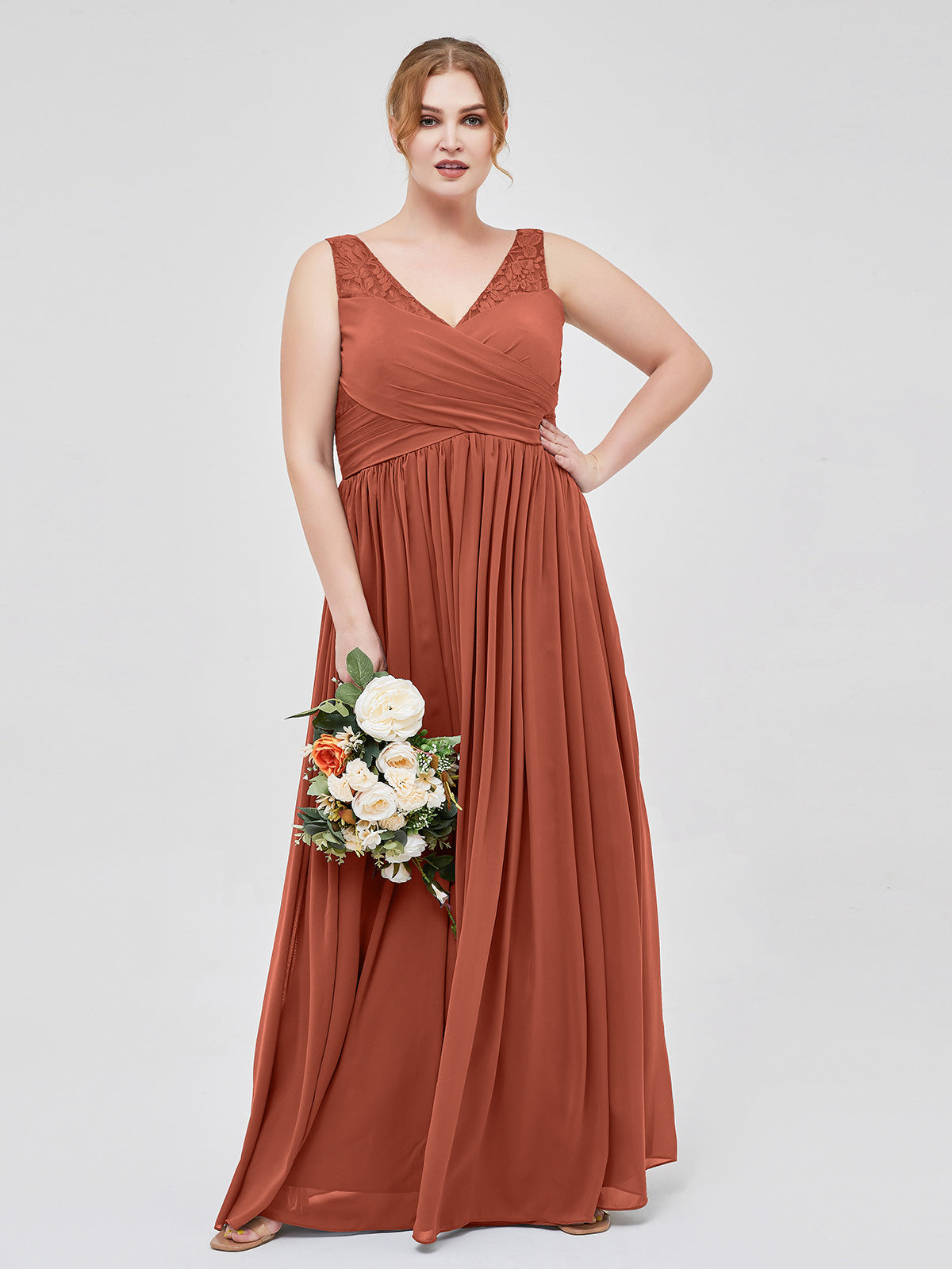 V Neck Chiffon and Lace Maxi Bridesmaid Gown Rust