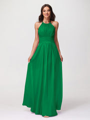 Halter Chiffon Long Gown With Lace Strap Emerald