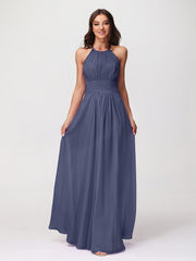Halter Chiffon Long Gown With Lace Strap Stormy