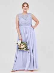 Illusion Neck Chiffon and Lace Dresses Lavender