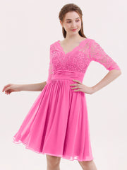 Lace and Chiffon Short Dress with Half Sleeves Azalea