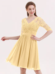 Lace and Chiffon Short Dress with Half Sleeves Gold