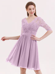 Lace and Chiffon Short Dress with Half Sleeves Wisteria