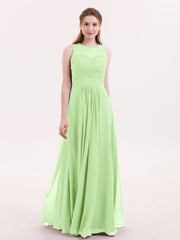 • With a beautiful lace overlay on the bodice of this gown and a chiffon dress.