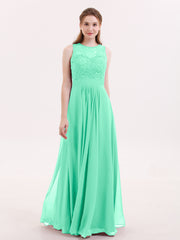 • With a beautiful lace overlay on the bodice of this gown and a chiffon dress.