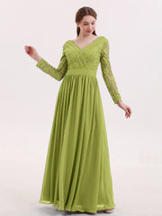 V Neck Lace and Chiffon Dress with Long Sleeves Clover