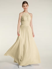 Halter Chiffon And Lace Long Dresses Champagne